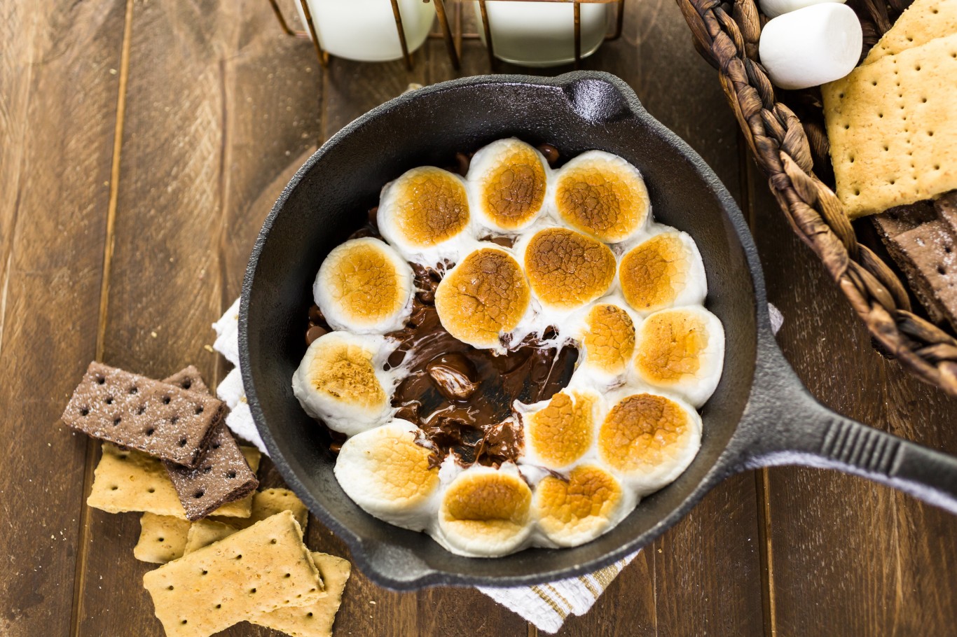 De trend vanuit Amerika: s’mores zijn warme, gesmolten marshmallows met chocolade. Een zalige combinatie die je lekker scoopt (dipt) met een chocolate chip cookie. Even in de oven in het speciale bakblik en smullen maar! De naam betekent ‘some more’. Want eenmaal geproefd, dan wil je nog meer!