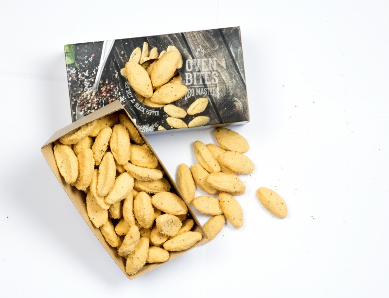 Hartige zoutjes in de smaak zeezout-peper. Heerlijk om op te warmen in het speciale ovenbakje voor nog meer smaak! Lekker bij de borrel!